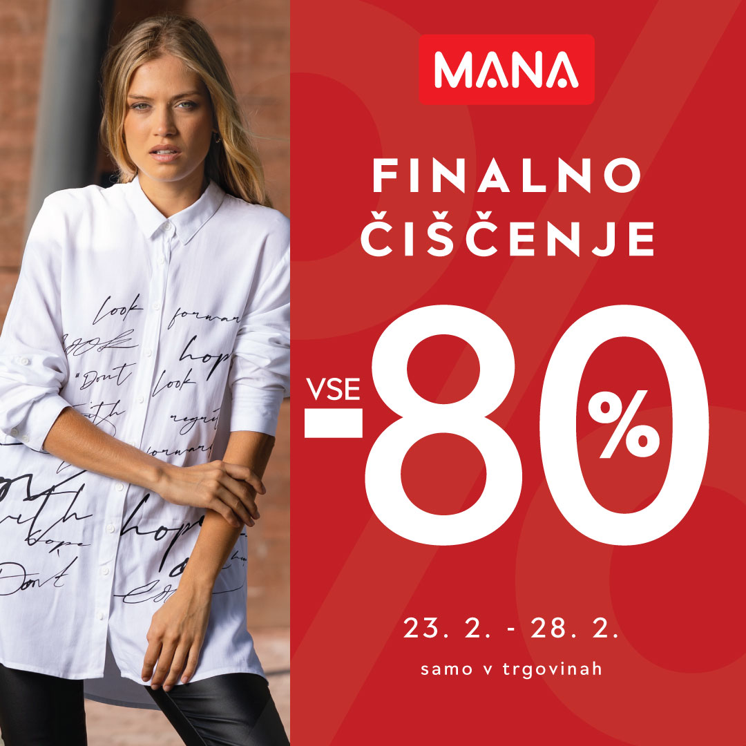 Pozor, pozor! 80% SEZONSKO ČIŠČENJE v trgovinah MANA! Zdaj neverjetni 80% popust na vsa oblačila kolekcije jesen-zima.